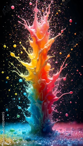 Wall mural : Panorama exploding splashes paint illustration rainbow colors liquid exploding liquid paint splash r