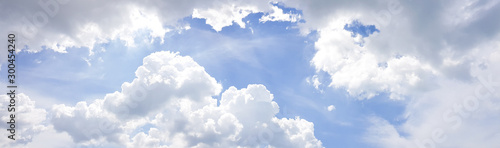 Wall mural panorama of clear blue sky with white cloud background. clearing day and good weather in the morning