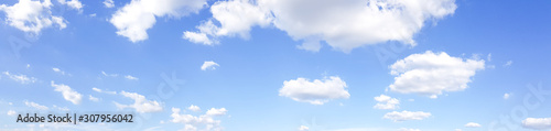 Wall mural panorama of clear blue sky with white cloud background. clearing day and good weather in the morning