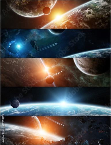 Wall mural panorama of distant planet system in space 3d rendering elements of this image furnished by nasa - Wall murals Wall mural panorama of distant planet system in space 3d rendering elements of this image furnished by nasa - Wall murals