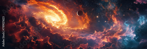 Wall mural panorama of outer space with stars, constellations, galaxies, planets and black hole - Wall murals Wall mural panorama of outer space with stars, constellations, galaxies, planets and black hole - Wall murals