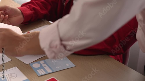Wall mural : Panorama video of startup company employee planning on user interface prototype for mobile applicati