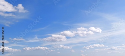 Wall mural panoramic cloudscape in clear blue sky in summer. nature sky background with fluffy clouds. - Wall murals Wall mural panoramic cloudscape in clear blue sky in summer. nature sky background with fluffy clouds. - Wall murals