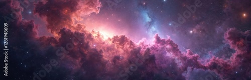 Wall mural panoramic deep space background. star field texture shows colorful starry night sky, outer space. ga