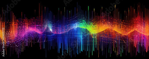 Wall mural panoramic layout of a neural network illuminated with a neon rainbow gradient