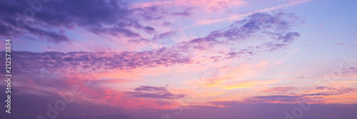 Wall mural panoramic photo, view of a pink and purple sky at sunset. sky panorama background, header and web ba