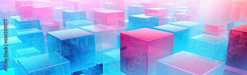Panoramic texture background with random 3d cubic crystal boxes in bright blue and red colorsWall mural
