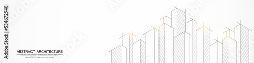 The watermark will not be included on Wall mural.: Panoramic view of architectural drawing with building construction for banner or website header temp