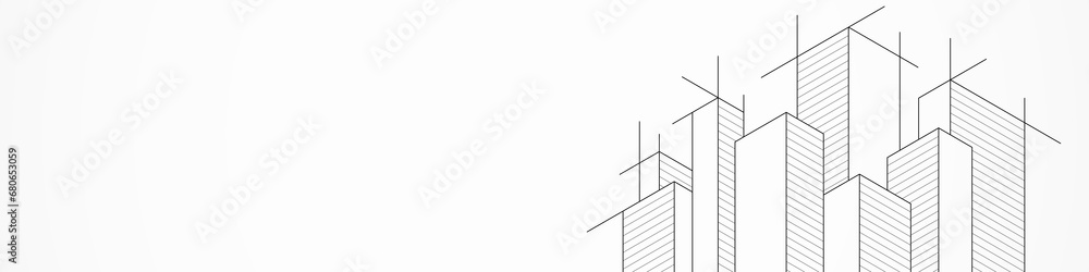 Wall mural panoramic view of architectural drawing with building construction for banner or website header temp