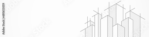 Wall mural : Panoramic view of architectural drawing with building construction for banner or website header temp