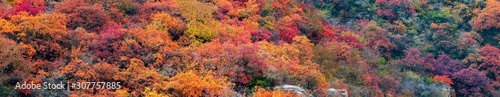 Wall mural panoramic view of autumn mountains. panorami view of red autumnal leaves. scenery of autumn mountain