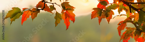 Panoramic view of autumnal colours leaf on sunset colorful bokeh background - panoramic view of mapleWall mural