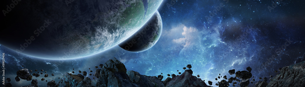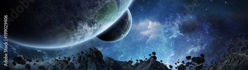 Wall mural panoramic view of planets in distant solar system 3d rendering elements of this image furnished by n - Wall murals Wall mural panoramic view of planets in distant solar system 3d rendering elements of this image furnished by n - Wall murals
