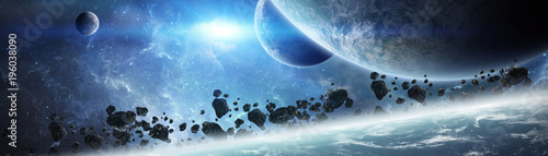Wall mural panoramic view of planets in distant solar system 3d rendering elements of this image furnished by n - Wall murals Wall mural panoramic view of planets in distant solar system 3d rendering elements of this image furnished by n - Wall murals