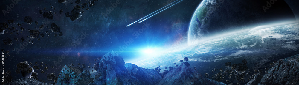 Wall mural panoramic view of planets in distant solar system 3d rendering elements of this image furnished by n - Wall murals Wall mural panoramic view of planets in distant solar system 3d rendering elements of this image furnished by n - Wall murals