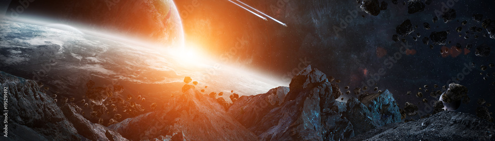 Wall mural panoramic view of planets in distant solar system 3d rendering elements of this image furnished by n - Wall murals Wall mural panoramic view of planets in distant solar system 3d rendering elements of this image furnished by n - Wall murals