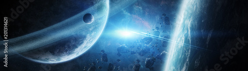 Wall mural panoramic view of planets in distant solar system 3d rendering elements of this image furnished by n