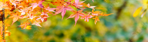 Panoramic view of red maple leaves - panoramic view of maple leaf on colorful backgroundWall mural