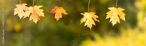 Wall mural panoramic view of red maple leaves. panoramic view of maple leaf on colorful background