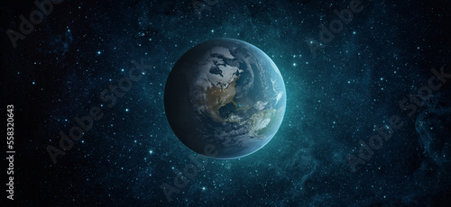 Wall mural panoramic view of the earth, star and galaxy. sunrise over planet earth, view from space. elements o