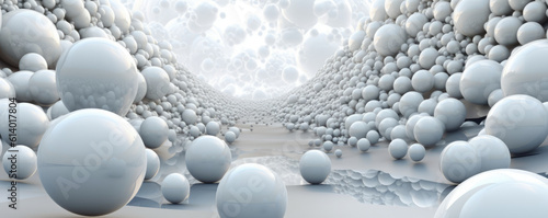The watermark will not be included on Wall mural.: Panoramic view of white abstract data spheres floating in a digital space, symbolizing the infinite