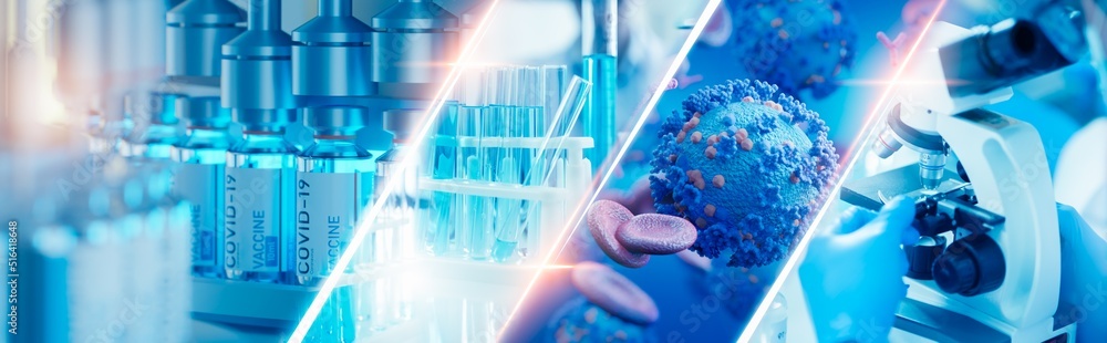 Panoramic web banner of microscope in medical research lab for science laboratory,study for making vWall mural