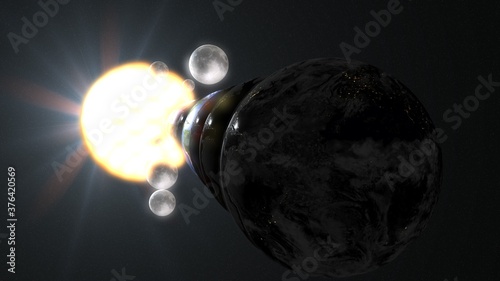 Wall mural : Parallel universe multiple earth illustration realistic 3d rendering and 3d illustration