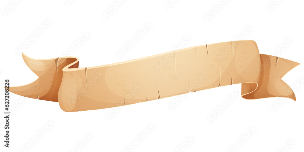 Wall mural parchment paper scroll ribbon, old vintage banner game ui element in cartoon style isolated on white