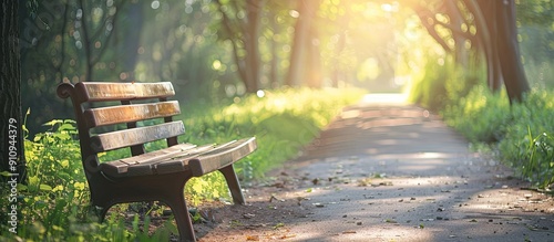 The watermark will not be included on Wall mural.: Park bench on a pathway with a copy space image