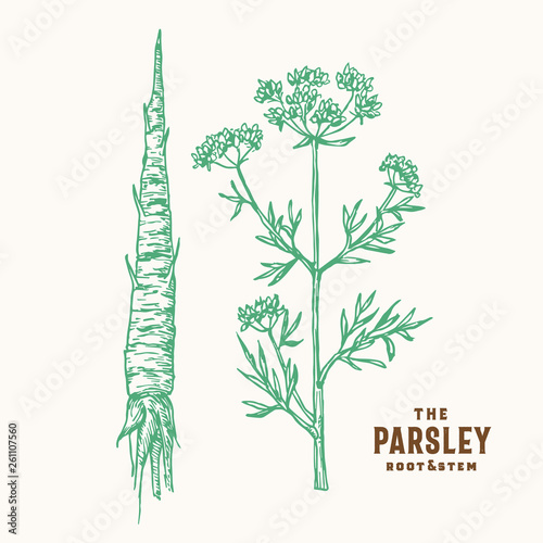 The watermark will not be included on Wall mural.: Parsley root and stem vector sign, symbol or illustration - hand drawn green parsley root and branch