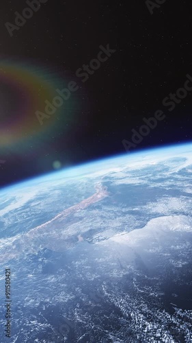 Wall mural : Partial earth view from space – vertical shot with starry background
