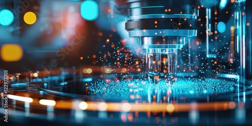 Wall mural : Particle detection apparatus in a modern lab, showcasing intricate sensors and lab glassware, neutra