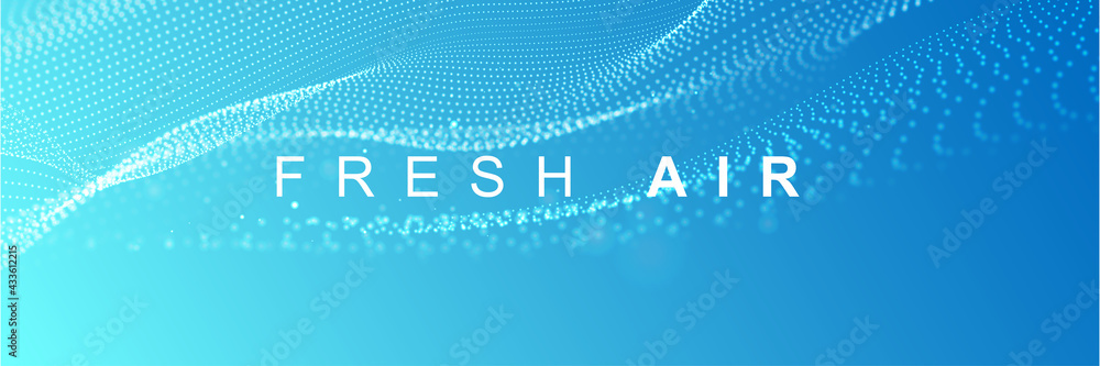 Wall mural particle waves showing a stream of clean fresh air. flowing particles with depth of field. air flow.