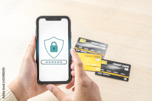 Wall mural passcode lock on mobile screen for privacy protection and security of online user