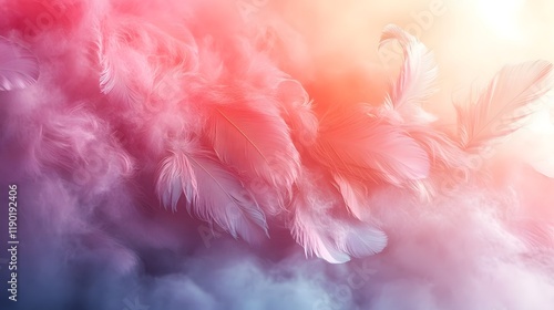 Wall mural : Pastel gradient fantasy inspired digital design featuring soft fluffy and delicate textures with whi