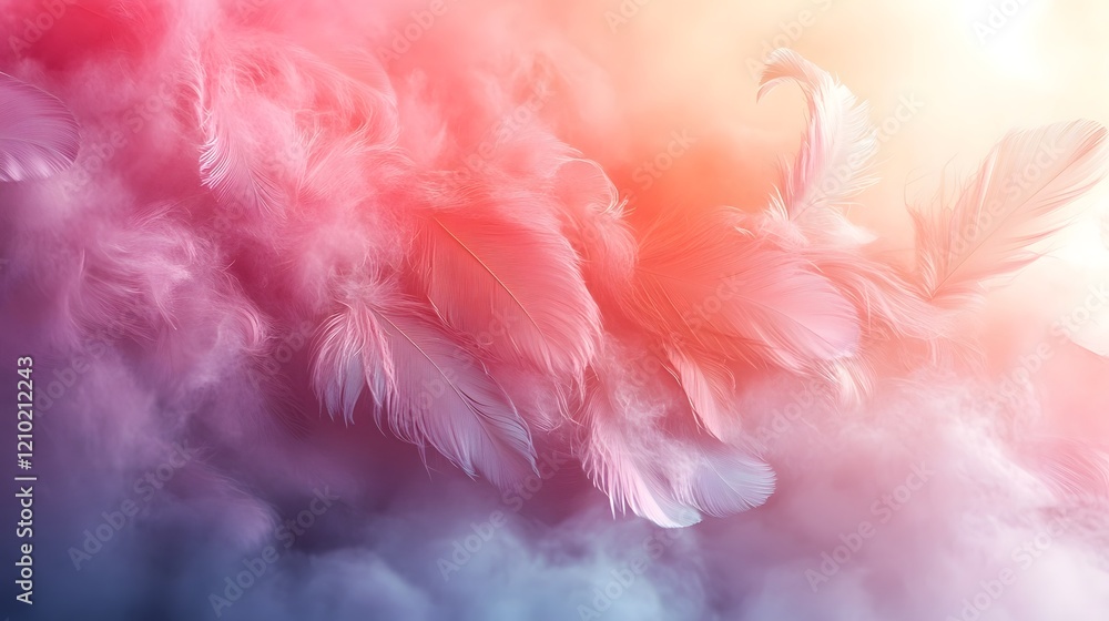 The watermark will not be included on Wall mural.: Pastel gradient fantasy inspired digital design featuring soft fluffy and delicate textures with whi