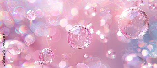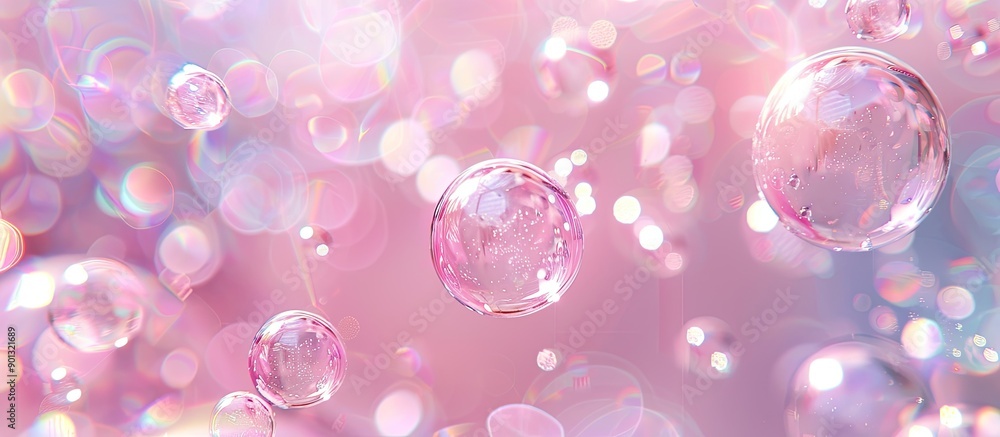 The watermark will not be included on Wall mural.: Pastel pink background with a beautiful bokeh air bubble abstract with a copy space image