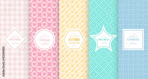 The watermark will not be included on Wall mural.: Pastel retro different vector seamless patterns