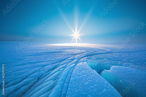 The watermark will not be included on Wall mural.: Patch of blue sky with white clouds peeking through over a vast ocean horizon