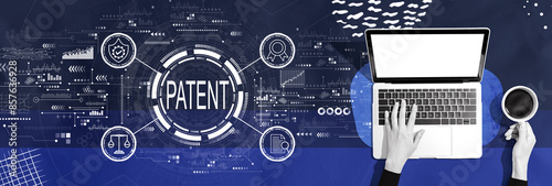 The watermark will not be included on Wall mural.: Patent concept with person using a laptop computer