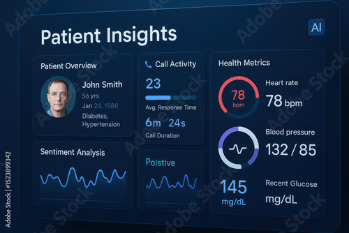 Wall mural patient insights dashboard displays healthcare data with call activity and health metrics for patien - Wall murals Wall mural patient insights dashboard displays healthcare data with call activity and health metrics for patien - Wall murals