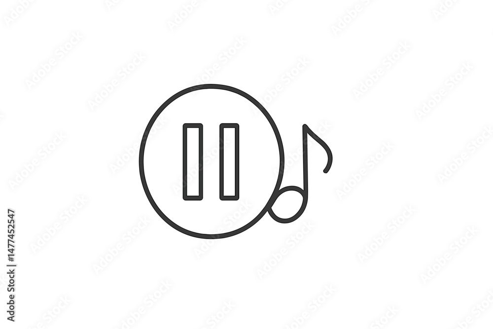 The watermark will not be included on Wall mural.: Pause button with musical note symbolizing a break in music playback to enhance user interaction and