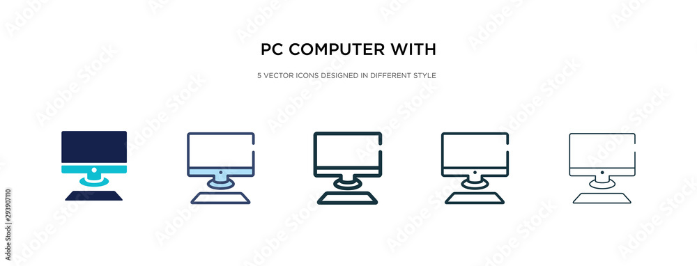 Wall mural pc computer with monitor icon in different style vector illustration. two colored and black pc compu