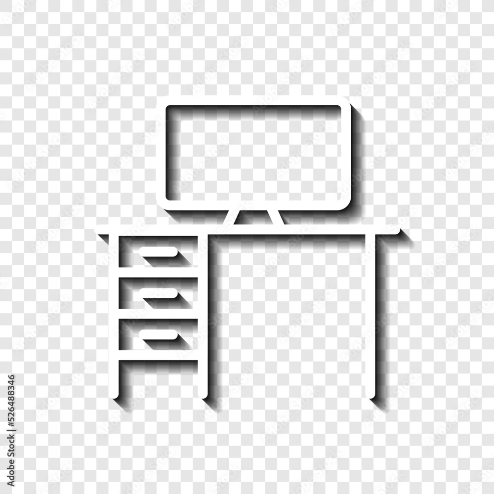 Wall mural : Pc table simple icon vector - flat design - white with shadow on transparent grid - ai