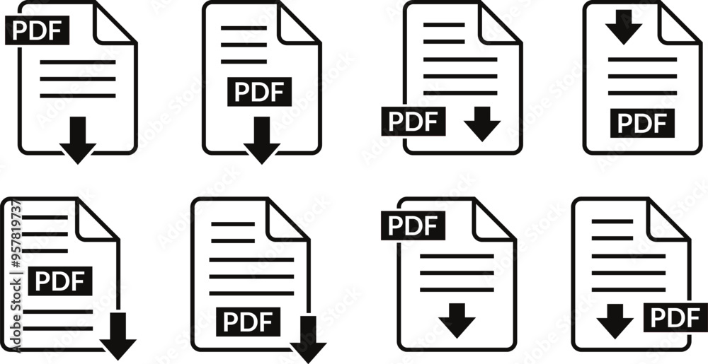 The watermark will not be included on Wall mural.: Pdf file download symbols set, pdf document text, web format information, pdf file black icon set ve