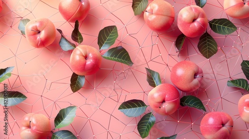 Wall mural peach background with polygon web that analyzing data on peach and square pieces with peach elements - Wall murals Wall mural peach background with polygon web that analyzing data on peach and square pieces with peach elements - Wall murals