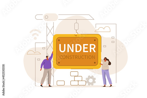 Wall mural people characters developing web site. developers team solving errors and bugs. website maintenance  - Wall murals Wall mural people characters developing web site. developers team solving errors and bugs. website maintenance - Wall murals