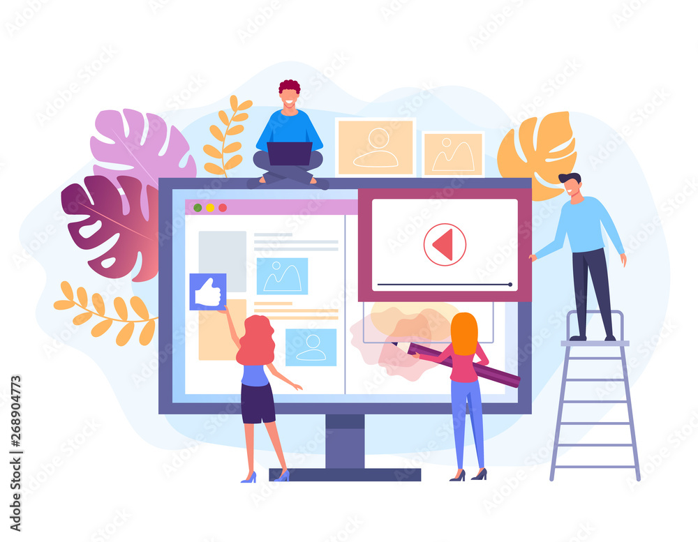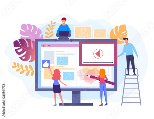 Wall mural people characters working at web site project. web development concept. vector flat graphic design i