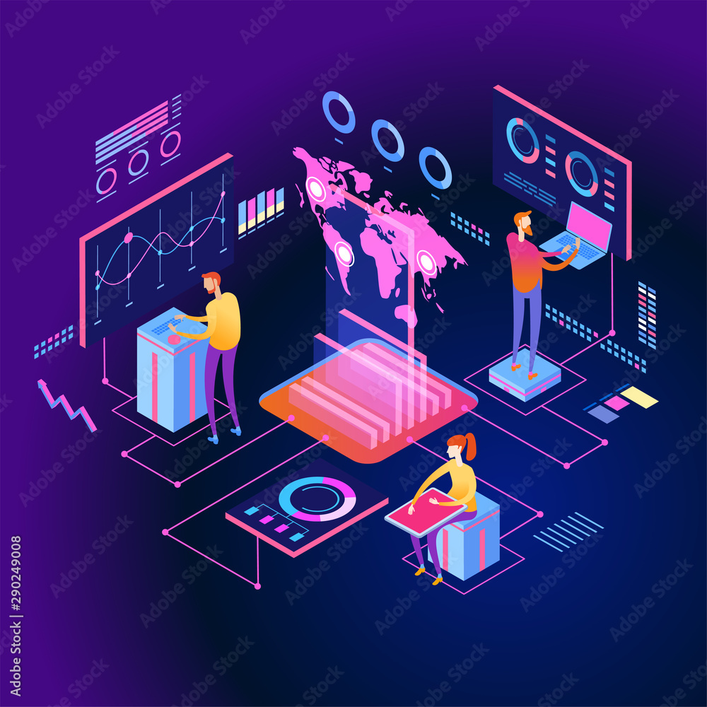 Wall mural people interacting with graphs and papers. workflow and business management. 3d vector isometric ill - Wall murals Wall mural people interacting with graphs and papers. workflow and business management. 3d vector isometric ill - Wall murals