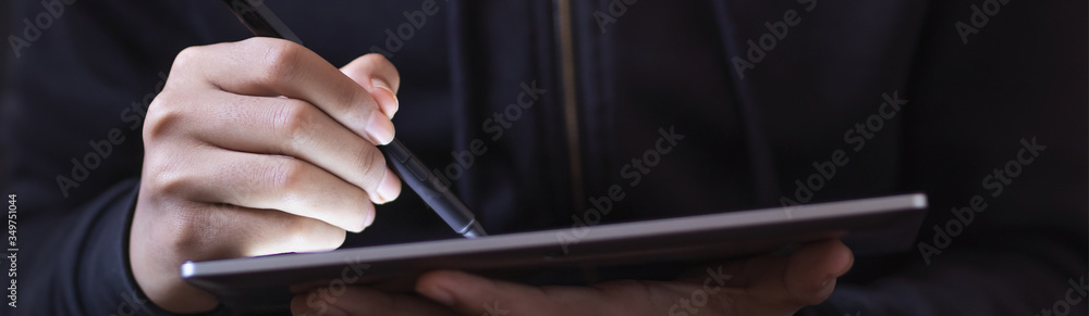 Wall mural people using computer working for background.